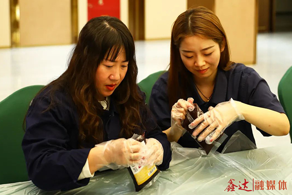 看著桌子上形形色色的材料,大家躍躍欲試,戴起手套,和面、打平、搓圓、壓模、出模,配合默契,每個人都化身月餅師,互相探討著各自的制作方法和技巧,用自己的作品共迎佳節(jié)的到來,整個活動現(xiàn)場歡聲笑語。